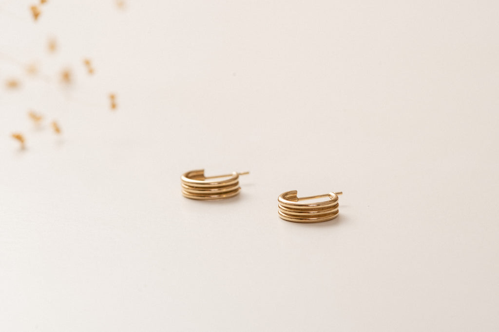 Des boucles d'oreilles minimaliste en or gold filled 14k. Ces petites créoles seront parfaites pour porter avec d'autres boucles pendantes par example.