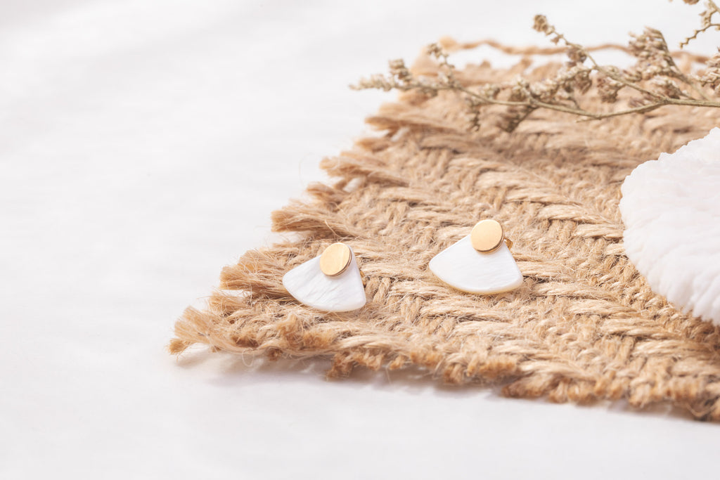 Délicat Or Gold-Filled 14k Boucles d'oreilles avec nacre blanc naturel. Classique, élégant et facile à porter.