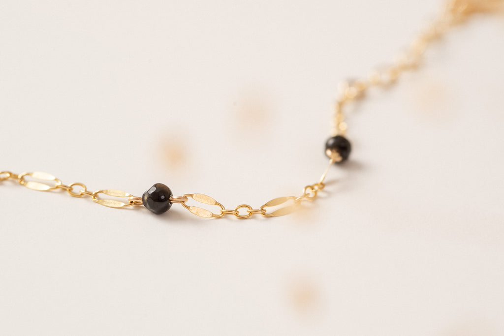 Nous utilisons de l’Or Gold-Filled 14 carats importé des États-Unis, contenant au minimum 5% d’Or massif 14 carats. L’Or Gold-Filled résiste à l’eau, ne provoque pas d’allergies, ne noirçit pas, est durable et résistant. Contrairement aux bijoux en Plaqué-or ou “Dorés à l’or fin” qui ne contiennent qu’une infime partie d’Or massif (souvent 0,05%), les bijoux en Or Gold-filled ne changent pas de couleur et résistent à la vie.