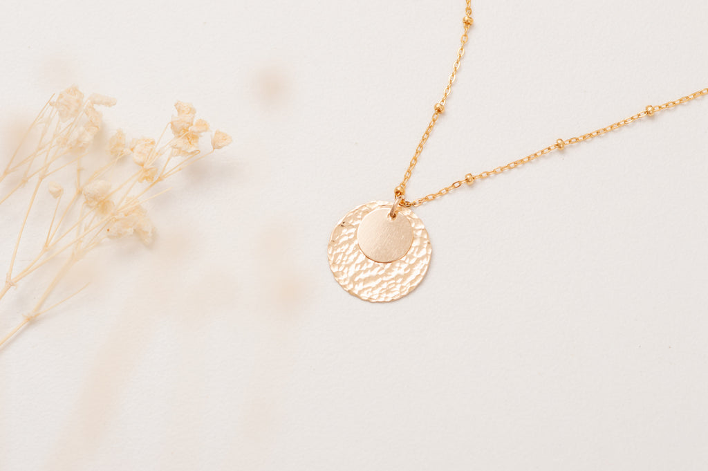 Nous utilisons de l’Or Gold-Filled 14 carats importé des États-Unis, contenant au minimum 5% d’Or massif 14 carats. L’Or Gold-Filled résiste à l’eau, ne provoque pas d’allergies, ne noirçit pas, est durable et résistant. Contrairement aux bijoux en Plaqué-or ou “Dorés à l’or fin” qui ne contiennent qu’une infime partie d’Or massif (souvent 0,05%), les bijoux en Or Gold-filled ne changent pas de couleur et résistent à la vie.