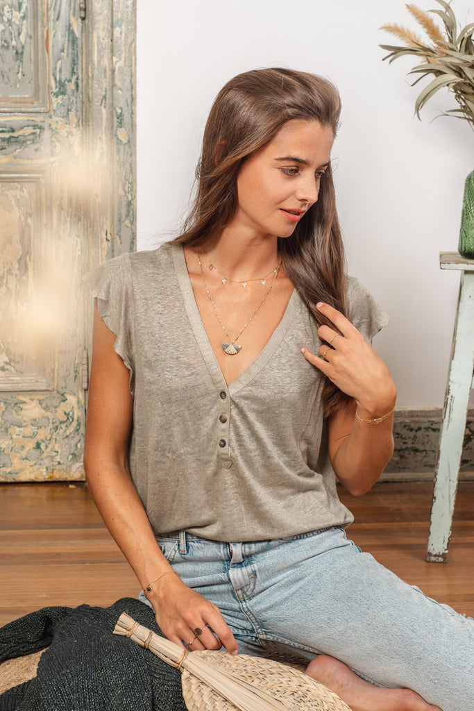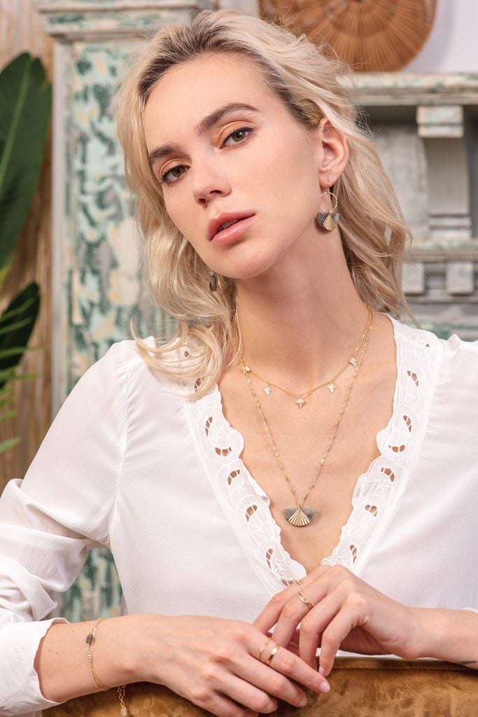 Embarquez pour une croisière sur le Mékong avec notre collier VIETNAM en Or gold filled 14 carats et sa pierre naturelle de Labradorite.