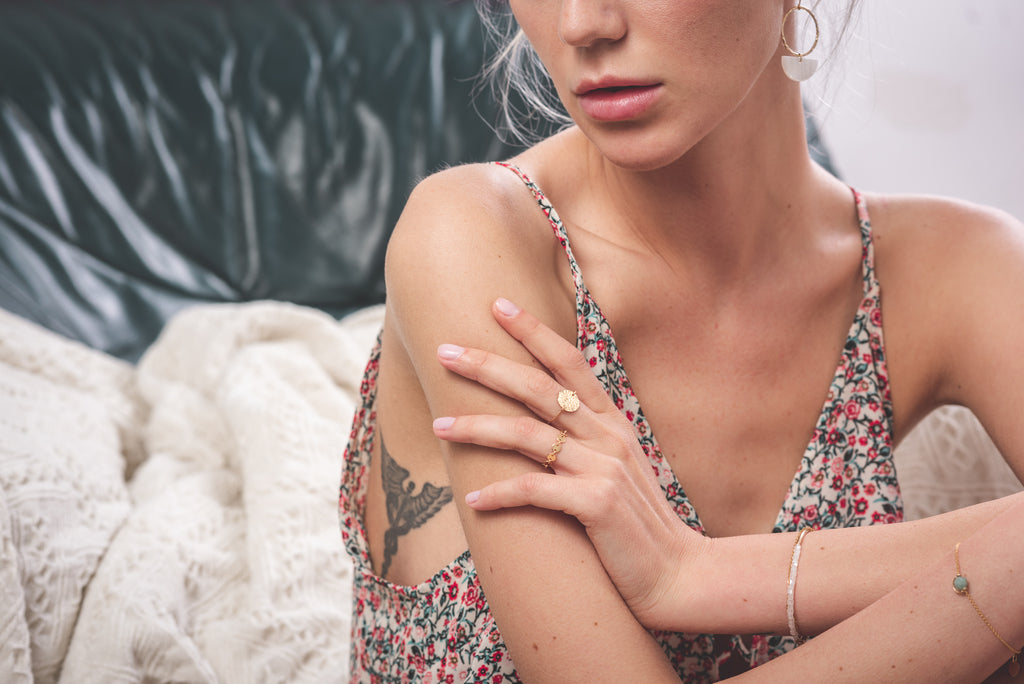 Nous utilisons de l’Or Gold-Filled 14 carats importé des États-Unis, contenant au minimum 5% d’Or massif 14 carats. L’Or Gold-Filled résiste à l’eau, ne provoque pas d’allergies, ne noirçit pas, est durable et résistant. Contrairement aux bijoux en Plaqué-or ou “Dorés à l’or fin” qui ne contiennent qu’une infime partie d’Or massif (souvent 0,05%), les bijoux en Or Gold-filled ne changent pas de couleur et résistent à la vie.