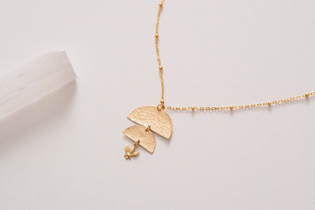 Nous utilisons de l’Or Gold-Filled 14 carats importé des États-Unis, contenant au minimum 5% d’Or massif 14 carats. L’Or Gold-Filled résiste à l’eau, ne provoque pas d’allergies, ne noirçit pas, est durable et résistant. Contrairement aux bijoux en Plaqué-or ou “Dorés à l’or fin” qui ne contiennent qu’une infime partie d’Or massif (souvent 0,05%), les bijoux en Or Gold-filled ne changent pas de couleur et résistent à la vie.