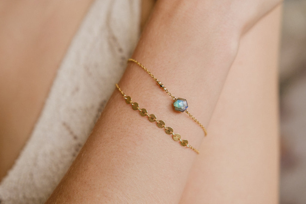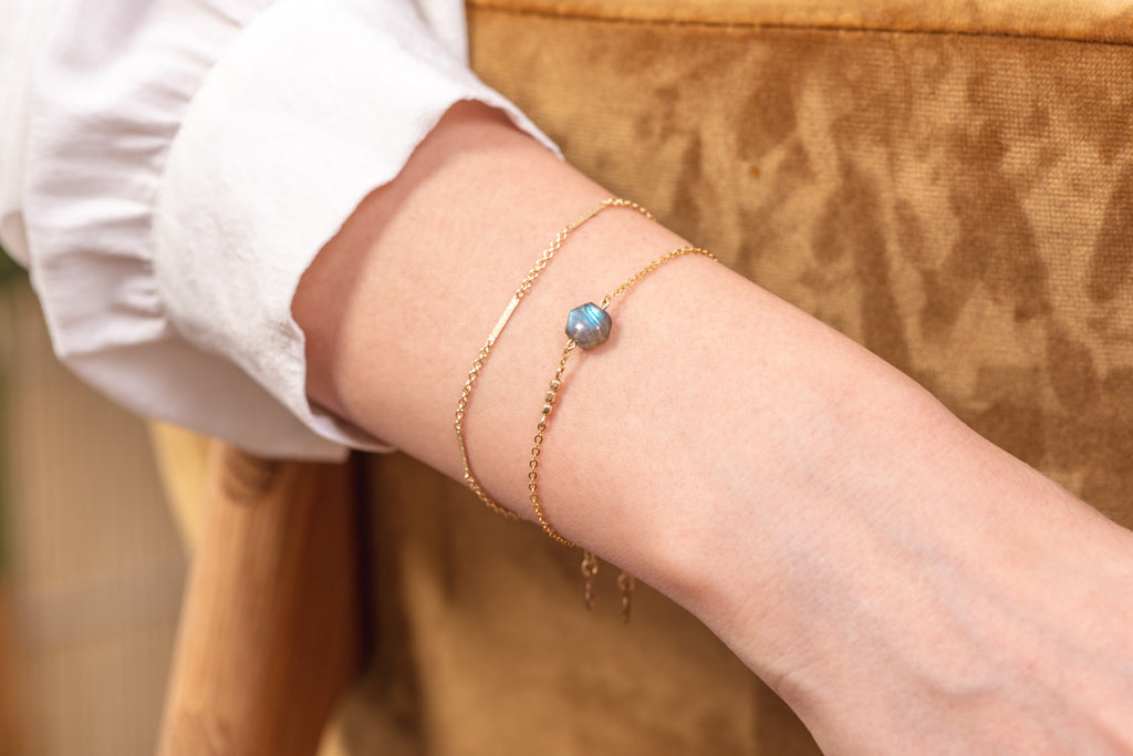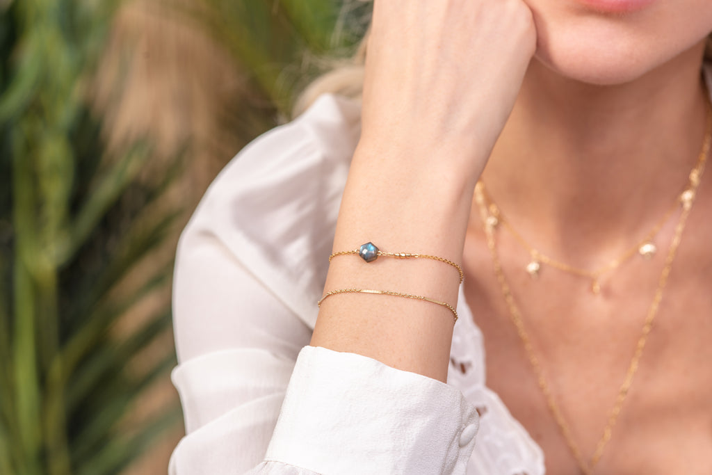 Nous utilisons de l’Or Gold-Filled 14 carats importé des États-Unis, contenant au minimum 5% d’Or massif 14 carats. L’Or Gold-Filled résiste à l’eau, ne provoque pas d’allergies, ne noirçit pas, est durable et résistant. Contrairement aux bijoux en Plaqué-or ou “Dorés à l’or fin” qui ne contiennent qu’une infime partie d’Or massif (souvent 0,05%), les bijoux en Or Gold-filled ne changent pas de couleur et résistent à la vie.