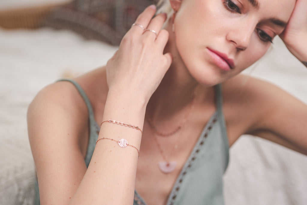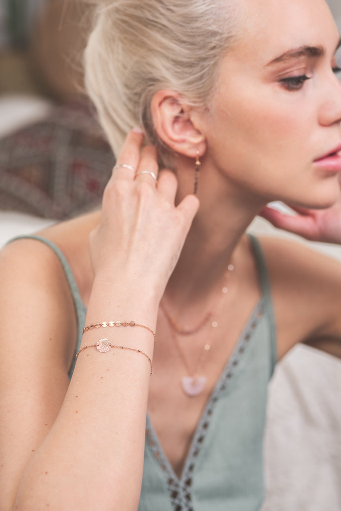 Plongez dans les douces couleurs et textures marocaines avec notre bracelet MAROC en Or rose Gold-filled 14k et petites perles en Argent massif 925. Parfait pour associer avec d’autres pièces ZOAJE en Or rose et Argent.