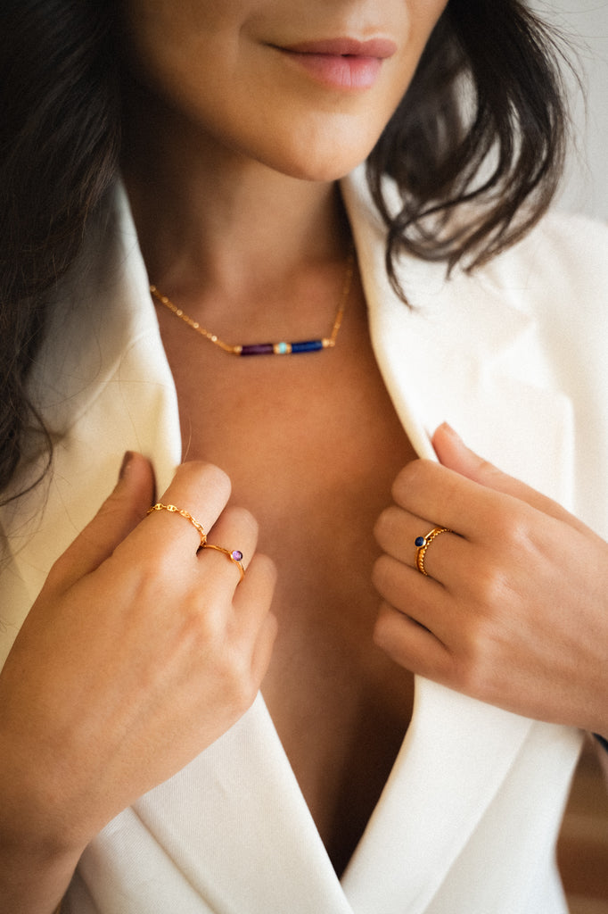 - Bagues délicates et pierre précieuse naturelle Lapis-lazuli